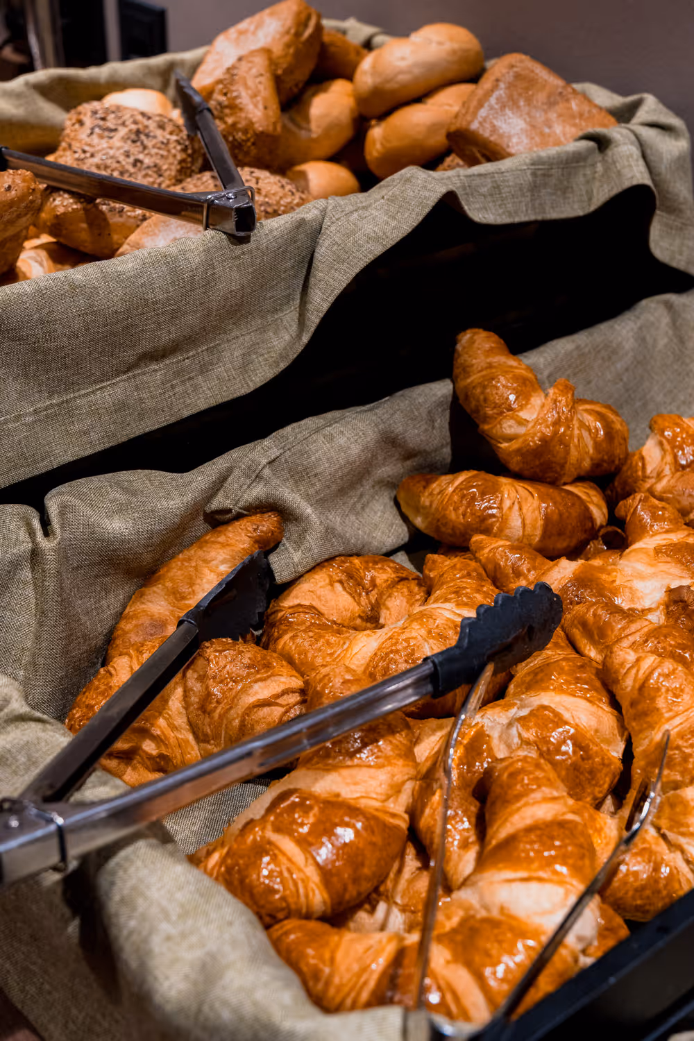 Vielfältige Brot- und Brötchenauswahl (auch glutenfreie Produkte) sowie eine abwechslungsreiche Auswahl an Konfitüren und Wurst- und Käsewaren (auch laktosefreie Produkte).
